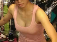 抓拍摊饼店的极品美女老板秀美胸!我每次都会来买她的饼哦