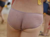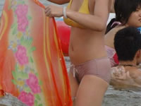 海边遇到一朵内裤奇葩女!不慎露毛!难道她身边的人就没有提醒?