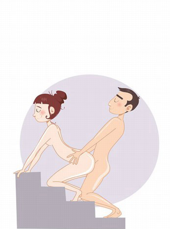 当然你家里需要有楼梯的存在哦。女孩则趴在楼梯阶上面,而男生则站在后面插入她的阴道。握紧她的肥臀,前后律动就行,也是一款非常不错的做爱姿势,值得推荐。